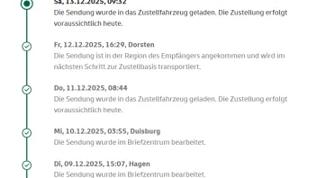 am Do, 11.12.2025, 08:44 kam die e-mail von DHL, das sich mein Paket in Zustellung befindet.